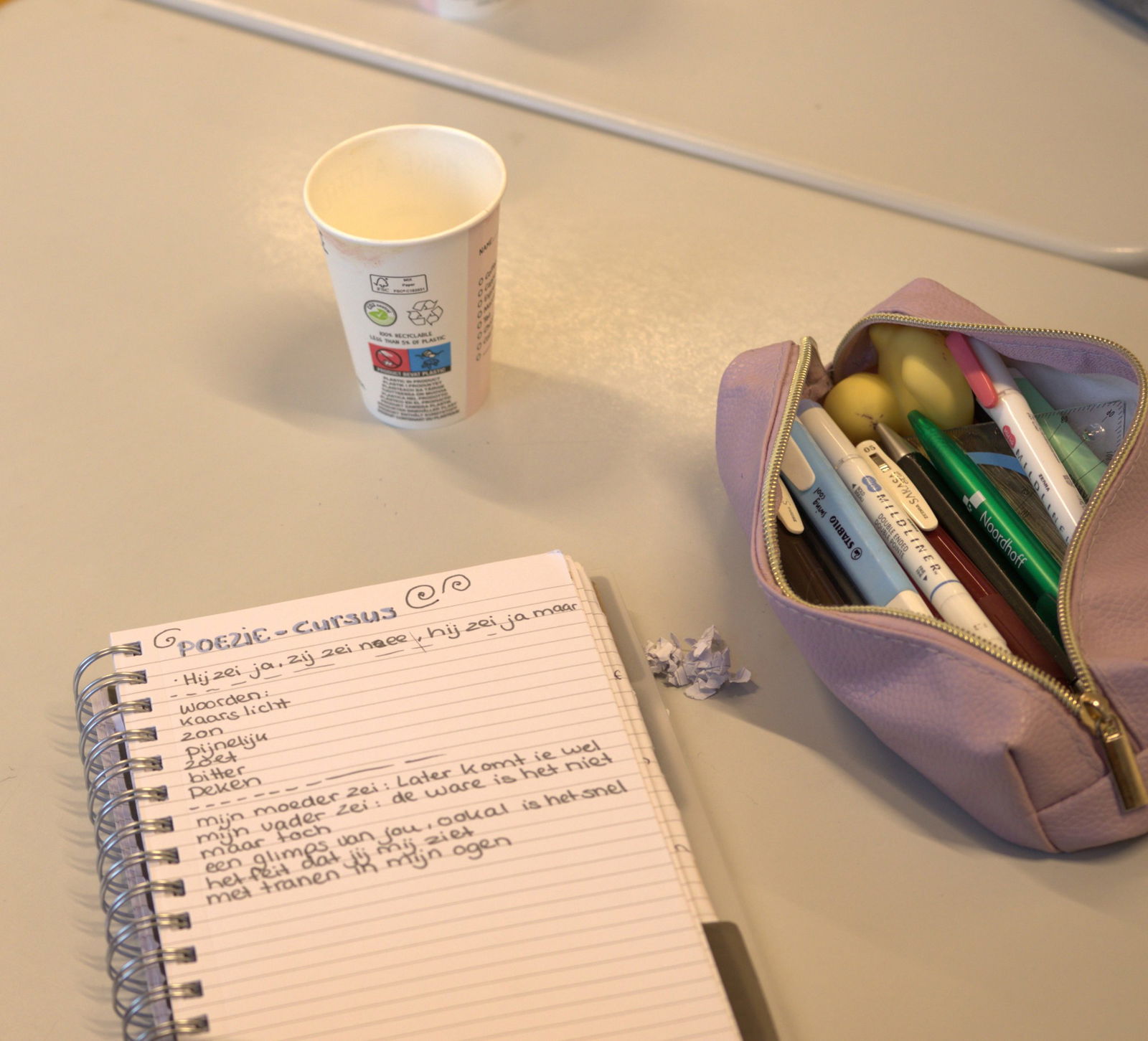 Valentijnsdag was nog nooit zo romantisch! Maandag 9 februari verzorgde dichter Ingmar Heytze vanuit de Montessori Academie een workshop liefdespoëzie. Het dichterlijk vuur werd in de leerlingen ontstoken en vervolgens werden ze – met wat praktische oefeningen – meteen aan het werk gezet. Dit leverde prachtige resultaten op! Ingmar was lovend over onze leerlingen en hun Montessoriaanse instelling. Na afloop zette hij nog wat handtekeningen en verliet het RML minstens zo geïnspireerd door onze leerlingen als zij door hem.
